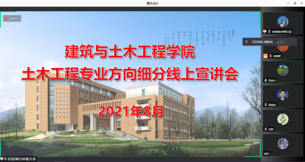 为帮助学生更加深入、细致的了解我院土木工程专业培养方案相关方向,积极推进专业分方向志愿提报工作,建筑与土木工程学院于8月28日下午3点借助腾讯会议网络平台,召开了2020级土木工程专业建筑工程和城市地下空间工程方向线上宣讲会,会议由副院长袁晓辉主持。