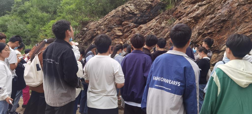 到达震雷山后,系主任高春华、王士革老师简要介绍了震雷山工程地质基本情况。牛文杰、张金浩、刘洋老师带领学生进行实地考察,对震雷山相关矿物、岩石、地质构造和不良地质现象特点做了详细讲解,并讲解了工程勘察和地质灾害治理的相关知识。
