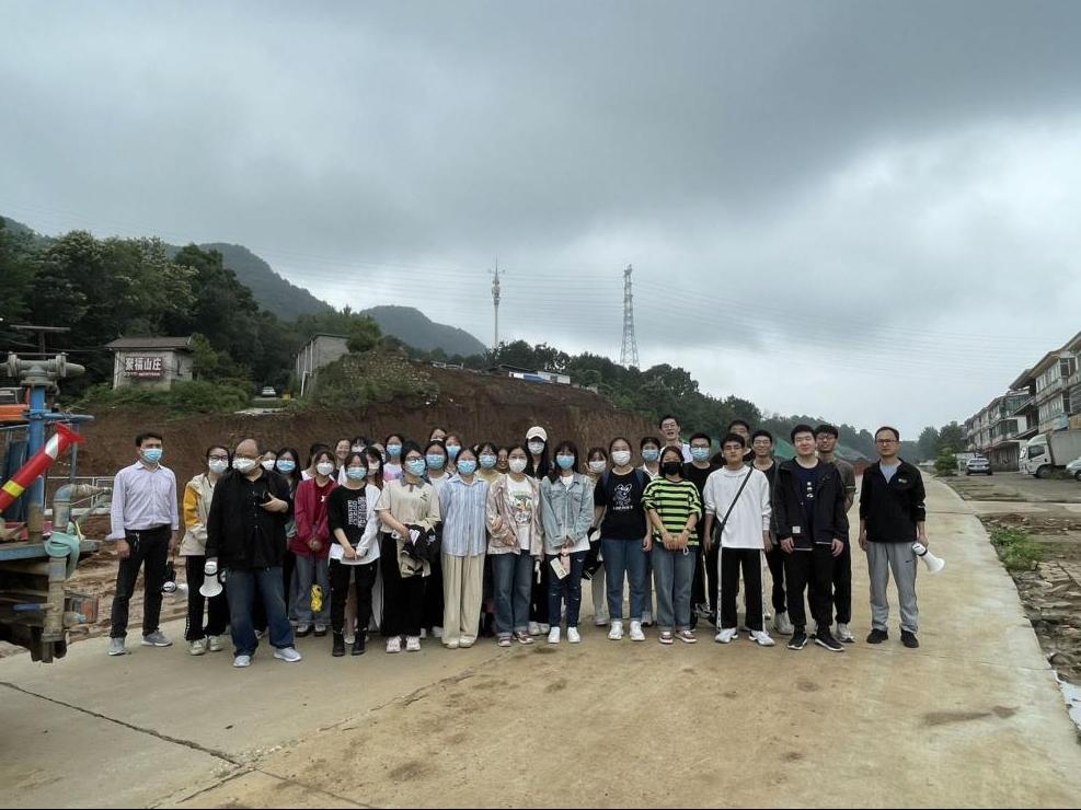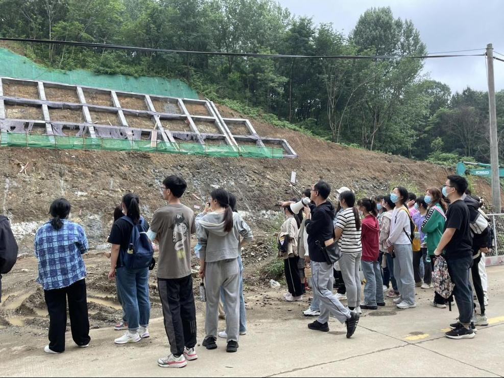 2023年5月30日,永利集团官网土木工程系、道路与桥梁工程系组织土木工程专业2021级本科生、道路桥梁与渡河工程专业2020级和2021级本科生前往震雷山、浉河景观带示范段工程茗阳路项目工地开展工程地质、路基路面实习。