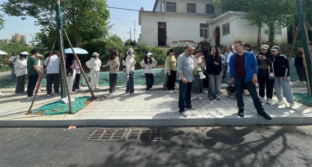 到达实习现场后,系主任王士革老师简要介绍了茗阳路施工现场基本情况,詹润涛老师对路基路面施工方法、施工流程、施工机械做了详细讲解,并结合工程实际讲解了路基路面病害治理和边坡支护的相关知识。