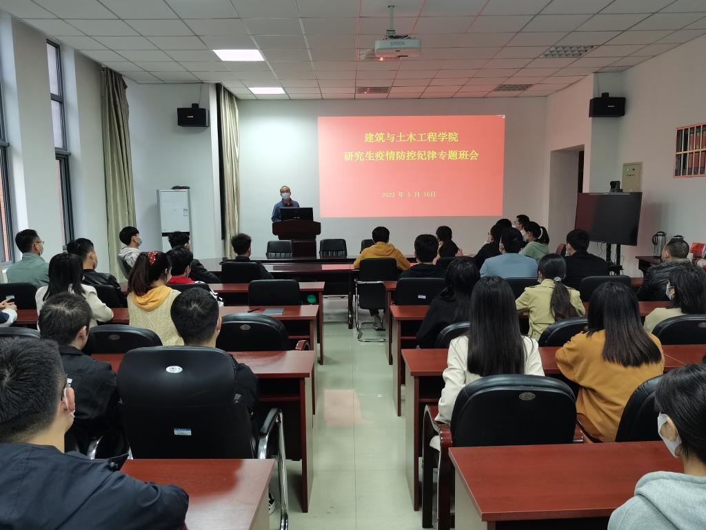 2022年5月10日下午,建筑与土木工程学院召开了研究生“疫情防控纪律”专题班会。