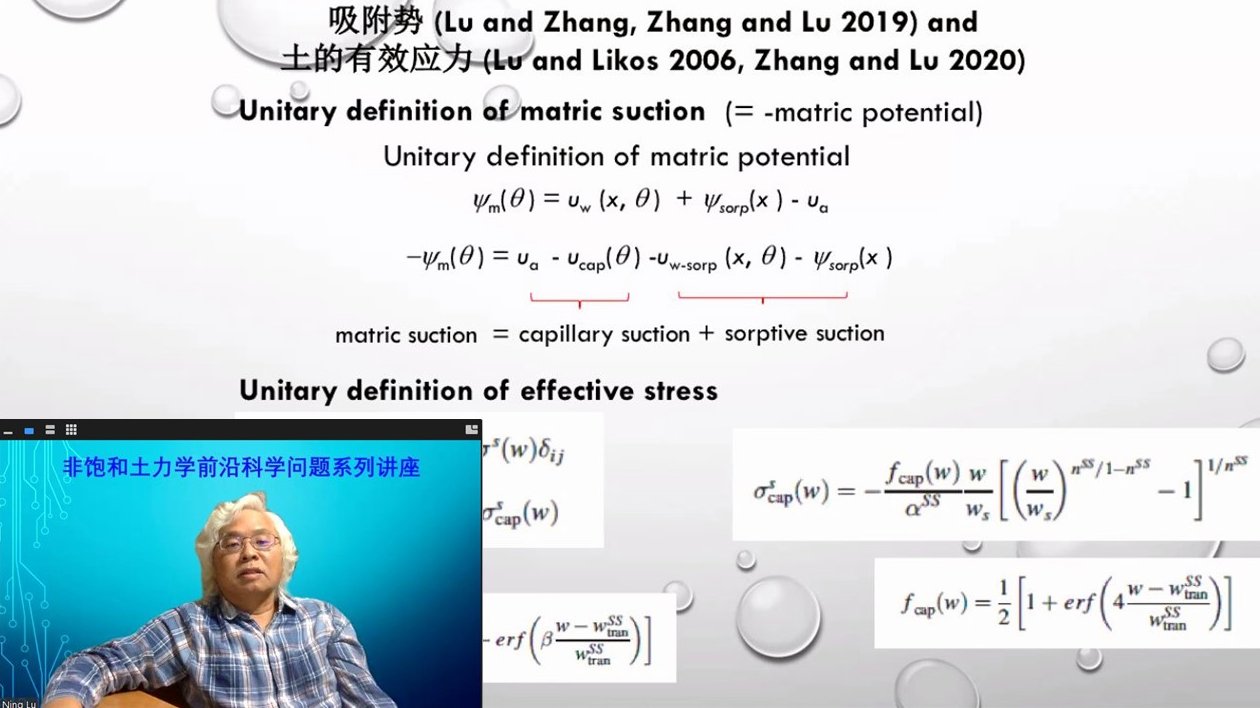 9月16日至11月18日,应建筑与土木工程学院邀请,美国科罗拉多矿业大学Ning Lu(卢宁)教授开设的18讲“非饱和土力学前沿科学问题系列云讲座”落幕,该系列讲座聚焦于非饱和土力学前沿领域,围绕土的吸附势(Soil sorptive potential)与土的有效应力(Soil effective stress)2大主题,18讲内容分别为: