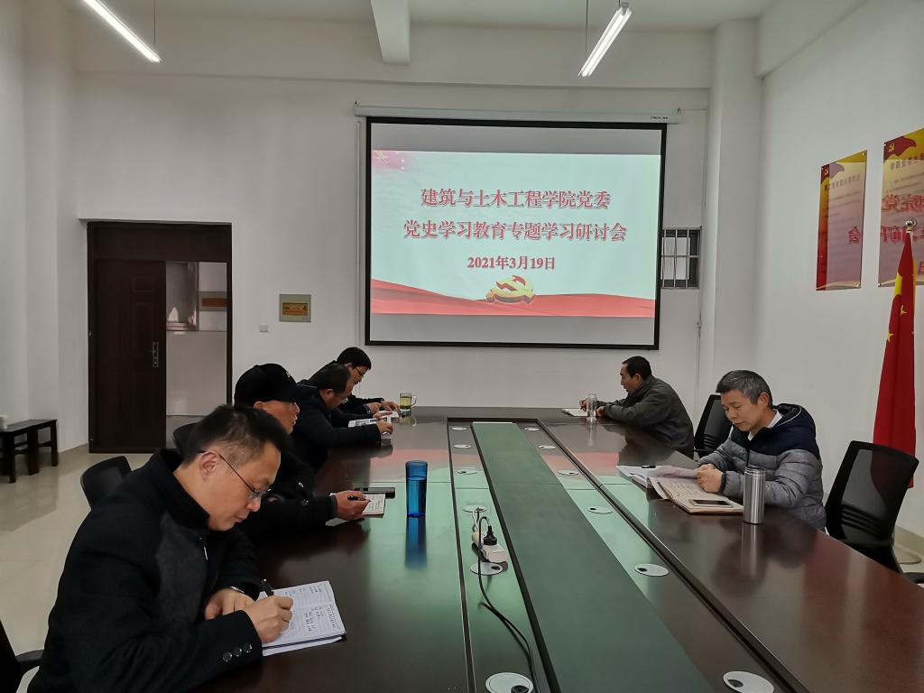 3月19日,建筑与土木工程学院党委理论学习中心组在综合实验楼203室“党员之家”召开党史学习教育专题学习研讨会。中心组成员参加了学习研讨。会议由学院党委书记黄学玉主持。