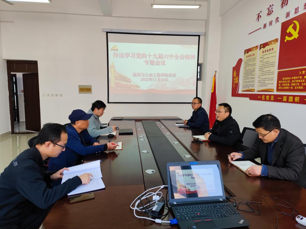 为深入学习宣传贯彻党的十九届六中全会精神,11月16日,建筑与土木工程学院党委组织师生开展党的十九届六中全会精神学习宣传和研讨活动。