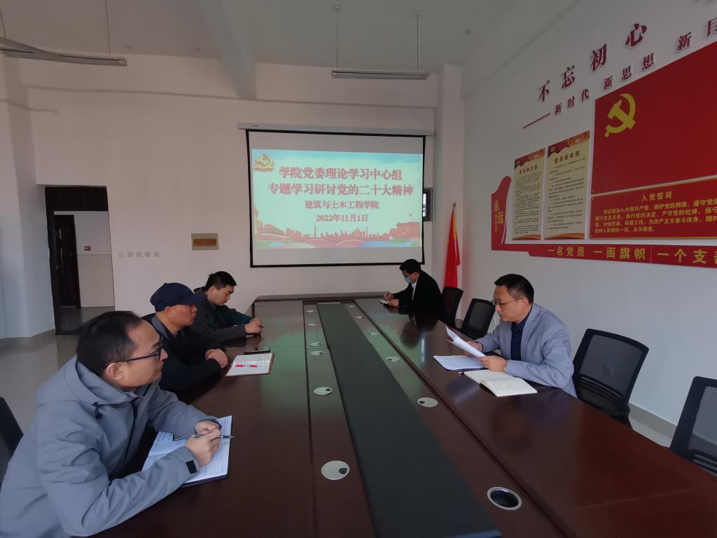 为深入学习宣传贯彻党的二十大精神,11月1日,建筑与土木工程学院党委理论学习中心组在综合实验楼402会议室召开党的二十大精神专题学习研讨会,并安排部署学习宣传贯彻党的二十大精神的相关工作。学院党委理论学习中心组全体成员参加,会议由学院党委书记方明科主持。