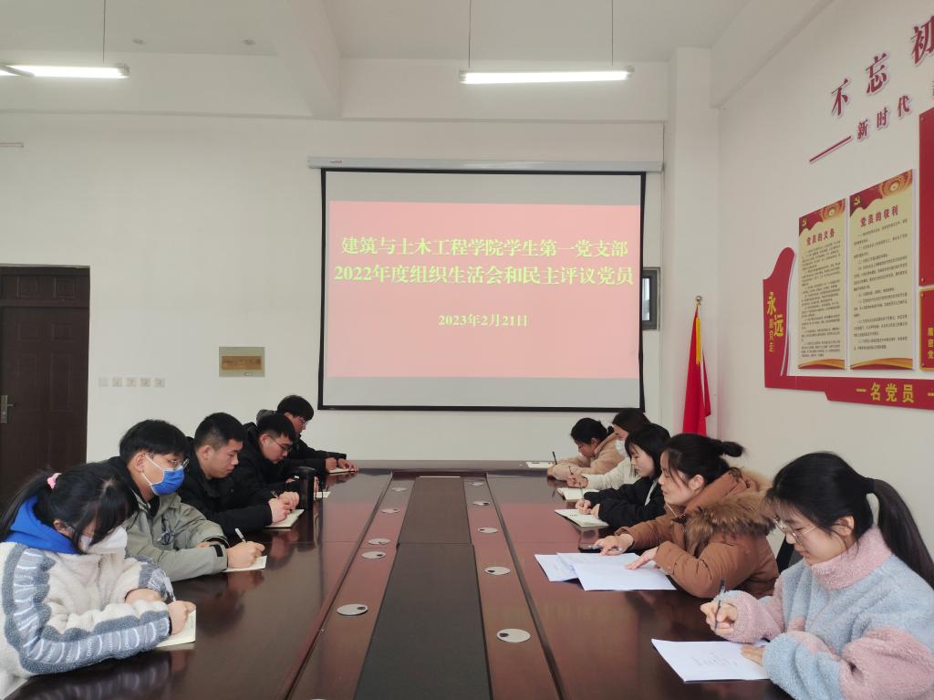 2月21日,建筑与土木工程学院学生第一党支部在综合实验楼402会议室召开2022年度组织生活会和开展民主评议党员工作,支部全体党员参加。会议由党支部书记张海燕主持。