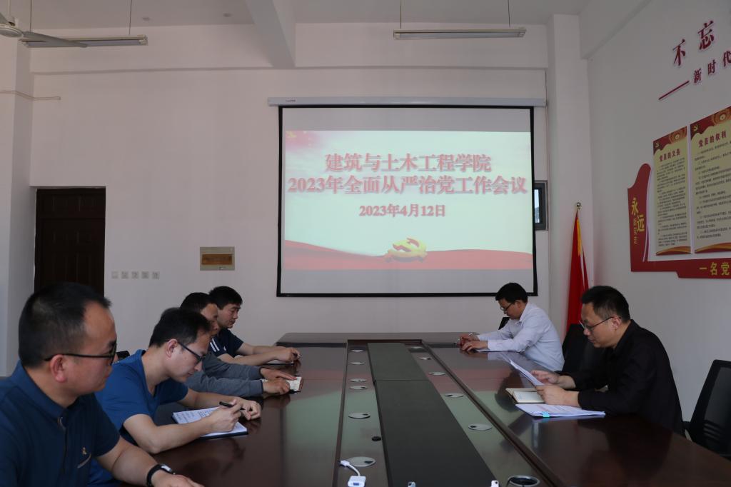 4月12日,建筑与土木工程学院在综合实验楼402会议室召开2023年全面从严治党工作会议。学院领导班子全体成员参加会议。会议由学院党委书记方明科主持。