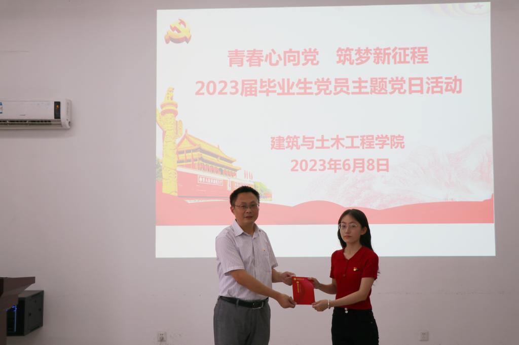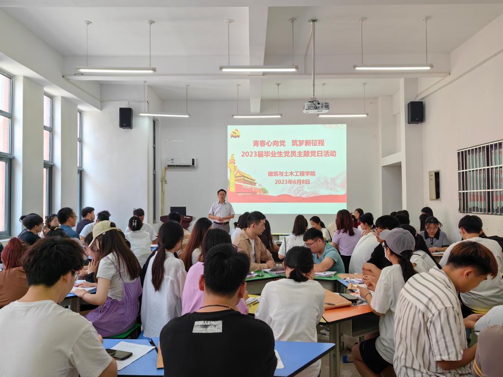 6月8日,建筑与土木工程学院在综合实验楼305室开展“青春心向党 筑梦新征程”毕业生党员主题党日活动。学院党委书记方明科,党委副书记冀鹏,学生党支部书记及2023届全体毕业生党员参加活动。