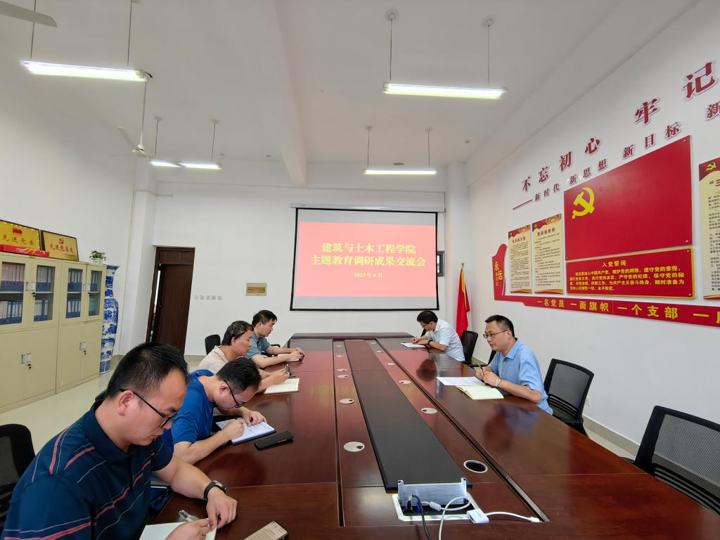 按照校党委关于开展学习贯彻习近平新时代中国特色社会主义思想主题教育的部署要求,以高质量的调查研究推动主题教育走深走实,6月28日下午,建筑与土木工程学院在综合实验楼402会议室召开了学习贯彻习近平新时代中国特色社会主义思想主题教育调查研究成果交流会,聚焦学院发展重点难点,深入交流调研成果。学院党委领导班子全体成员参加会议。会议由学院党委书记方明科主持。