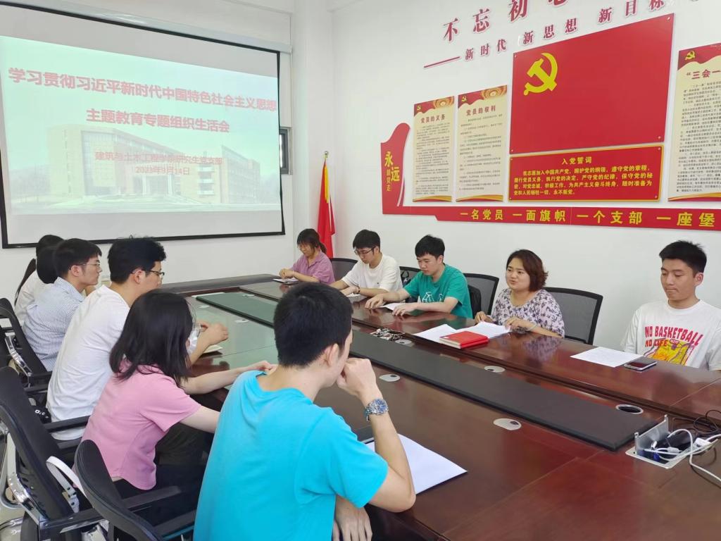 9月14日中午,建筑与土木工程学院研究生党支部在综合实验楼402室“党员之家”召开学习贯彻习近平新时代中国特色社会主义思想主题教育专题组织生活会。