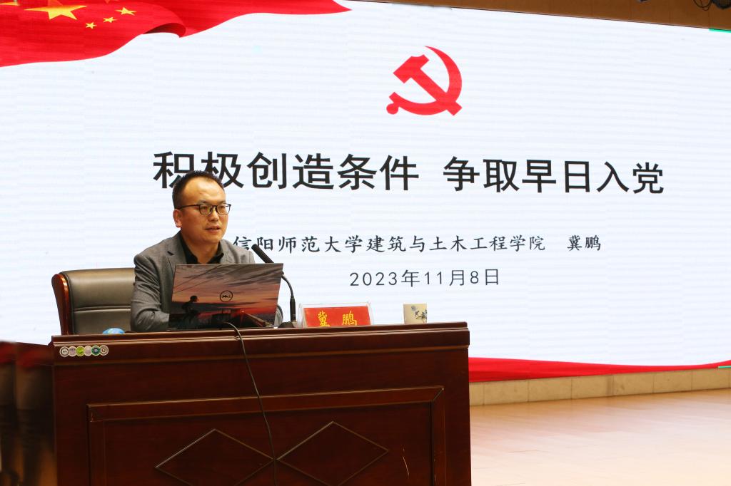 11月8日晚,建筑与土木工程学院党委副书记冀鹏应邀在理科楼报告厅为永利集团官网第40期党员发展对象培训班作《积极创造条件 争取早日入党》专题报告,共有649名党校学员通过线上+线下形式聆听报告。