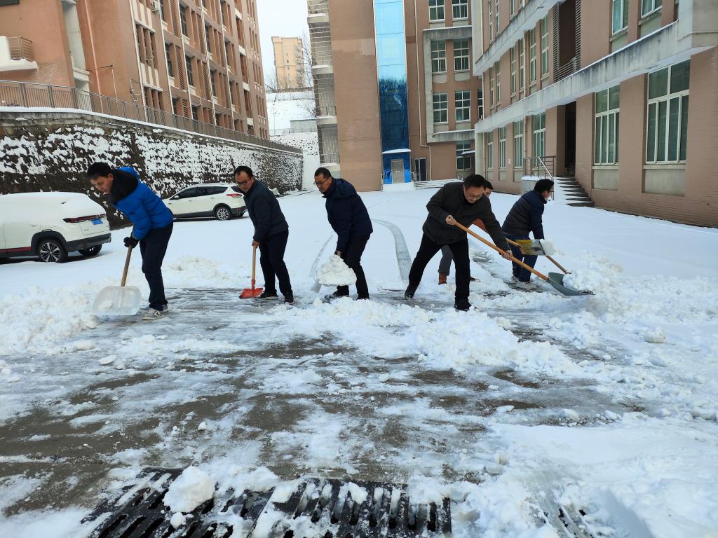 本次降雪持续时间较长、降雪量大,表层积雪已被车辆压实,底层积雪已经结冰,清雪除冰难度较大。除雪期间,老师们与社区工作人员、附近居民协调配合、团结协作,发扬吃苦耐劳、顽强拼搏的战斗精神,以最快的速度将指定区域的积雪清理干净,以实际行动为居民生产生活提供便利。