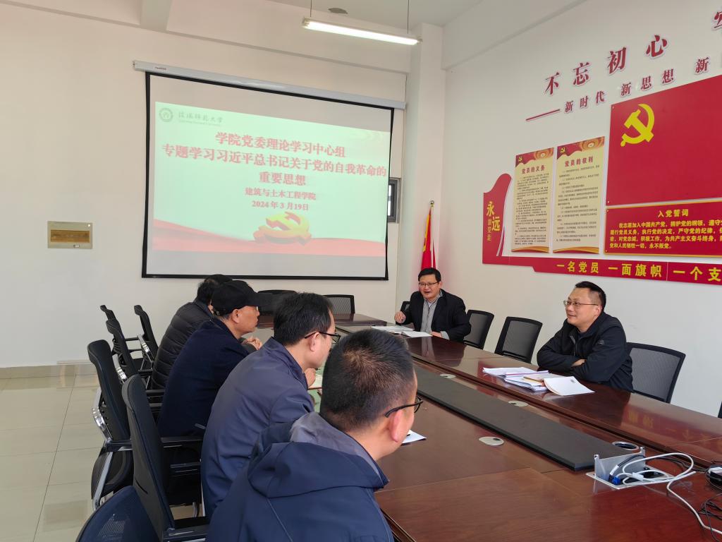 3月19日,建筑与土木工程学院党委理论学习中心组召开专题学习会议,深入学习贯彻习近平总书记关于党的自我革命的重要思想,集体学习新修订的《中国共产党纪律处分条例》(以下简称《条例》)。学院党委书记方明科主持会议,全体党委理论学习中心组成员参加学习研讨。