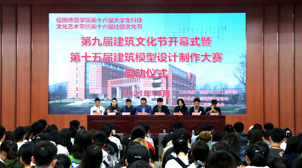 为了进一步深入贯彻落实学校关于大学生社团文化节有关精神,努力搭建实践育人平台,丰富大学生课余文化生活,帮助同学们树立正确的理想与目标,10月28日晚7点建筑与土木工程学院在逸夫楼报告厅举办了第九届建筑文化节开幕式暨第十五届建筑模型设计制作大赛启动仪式。建筑土木工程学院党委副书记冀鹏、团委书记张晓博、建筑爱好者协会指导教师张伟、新生班主任陈晓宇以及200余名社团成员共同参加了本次会议,会议由张晓博主持。