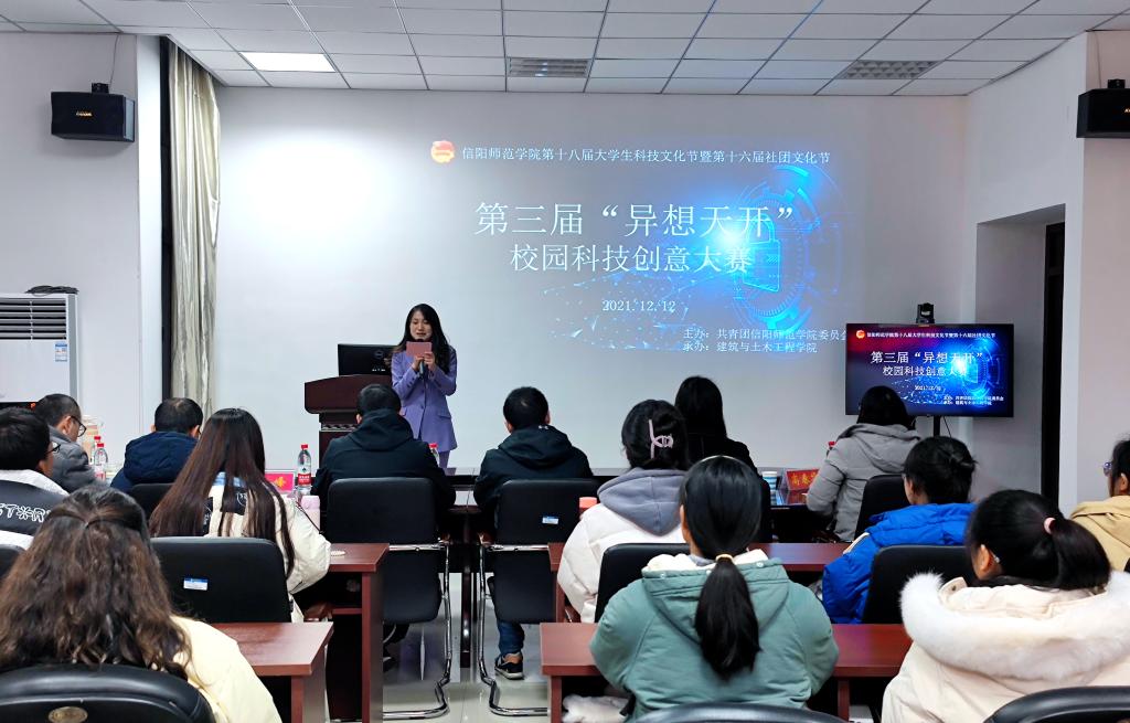 为调动校园学术创新氛围,培养大学生的思维与想象能力,由校团委主办,建筑与土木工程学院承办的第三届“异想天开”校园科学创意大赛决赛,于12月12日下午3点在综合实验楼206会议室举行。校团委副书记张鹏、建筑与土木工程学院党委副书记冀鹏、校团委组织部部长余艳楷等领导老师参加了本次比赛。