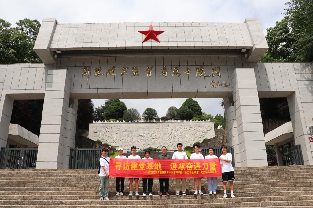 寻访建党基地,汲取奋进力量。7月9日,建筑与土木工程学院“党史学习教育团”重温习近平总书记重要考察足迹,前往“将军故里”新县开展暑期社会实践活动,先后参观了鄂豫皖苏区首府革命博物馆、鄂豫皖苏区首府烈士陵园、鄂豫皖革命根据地首府旧址群、列宁小学旧址、红田惨案旧址、田铺大湾创客小镇等红色教育基地。