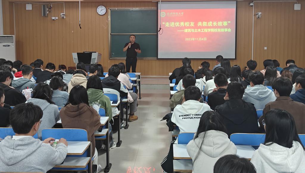 11月4日,建筑与土木工程学院在计科院107举办2023年首场“走进优秀校友 共叙成长故事”校友故事会活动。学院2011级土木工程专业校友廖荣森以“越努力,越幸运”为题与150名在校生分享成长故事,分享会由学院党委副书记冀鹏主持。