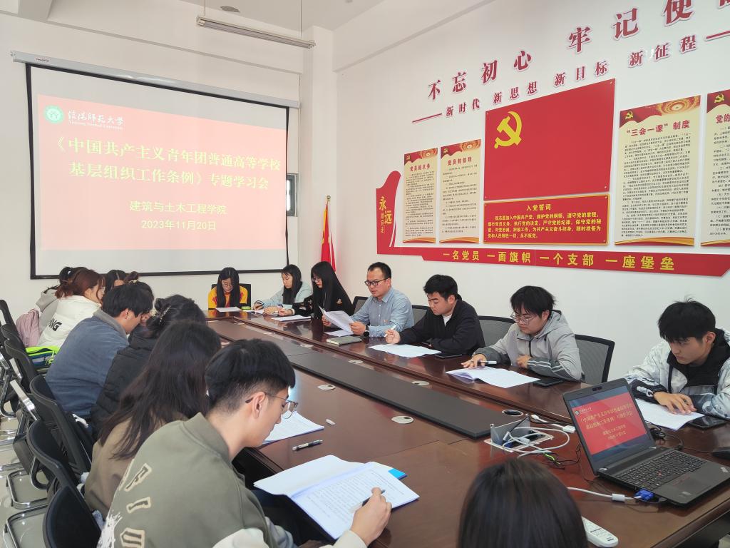 近日,共青团中央、教育部联合印发了新修订的《中国共产主义青年团普通高等学校基层组织工作条例》。为推动学生团干部及时领会条例精神,11月20日中午,建筑与土木工程学院在综合实验楼402会议室召开会议,专题学习《中国共产主义青年团普通高等学校基层组织工作条例》。学院党委副书记冀鹏,团委指导老师冯舒心,各班级、各社团和学生会团支部书记参加会议。