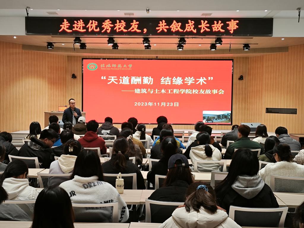 11月23日晚,建筑与土木工程学院在谭山书院博雅讲堂举办“走进优秀校友 共叙成长故事”校友故事会(第三场),2011级土木工程专业校友李禄欣,2014级工程管理专业校友赵旺应邀在线为150余名在校生作专题辅导报告。报告会由学院党委副书记冀鹏主持。