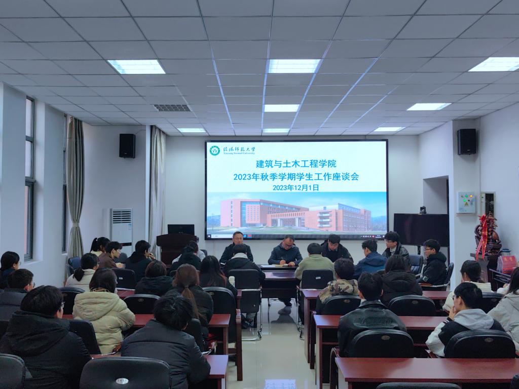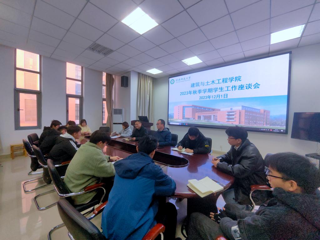 为进一步关心了解学生的思想动态和学习生活状况,收集学生对教育、管理、服务等方面的意见和建议,扎实推进学生思想政治教育工作实效,12月1日下午建筑与土木工程学院在土木楼206会议室召开2023年秋季学期学生工作座谈会,学院党委书记方明科,党委副书记冀鹏,专职辅导员张海燕、邓林、冯舒心,以及来自各班级、社团、学生会的30余名学生代表参加座谈会。