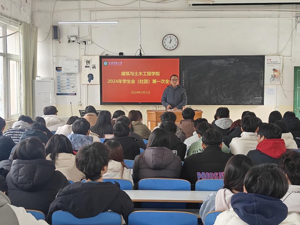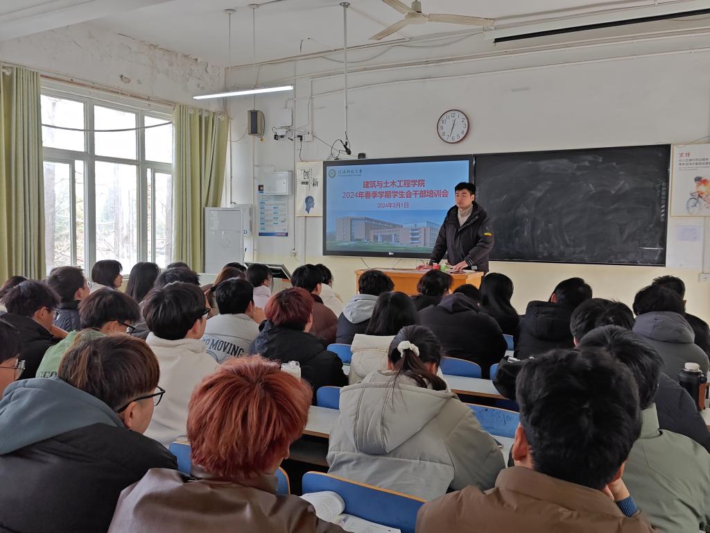 3月1日,建筑与土木工程学院在教三12召开2024年度第一次学生会(社团)全会暨春季学期学生会干部培训会,学院党委副书记冀鹏,学院团委老师冯舒心,学生会、社团全体人员及各班级班长、团支书参加会议。