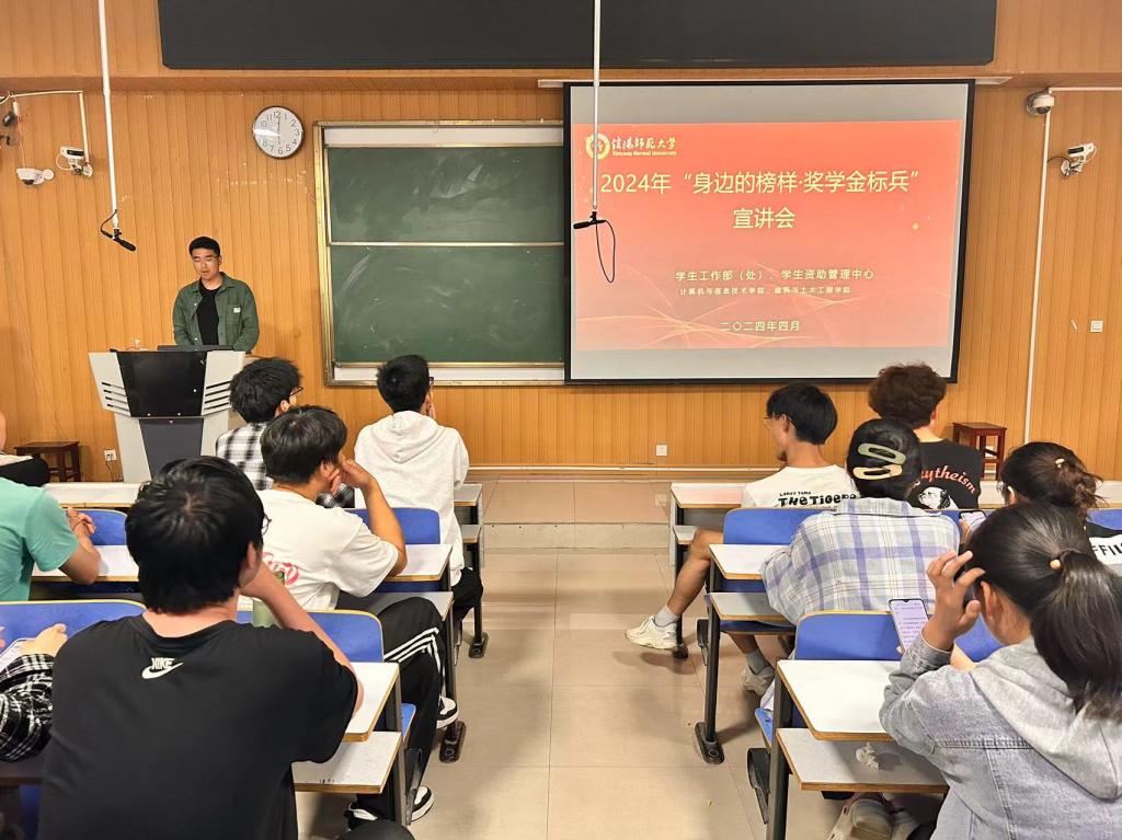 为深入学习贯彻党的二十大精神和习近平新时代中国特色社会主义思想,进一步拓展学生资助工作的育人功能,充分发挥奖学金获得者青年榜样的先进典型导向作用,4月18日,建筑与土木工程学院联合计算机与信息技术学院在计算机楼107教室召开了2024年“身边的榜样·奖学金标兵”宣讲会。学院2023和2022级学生参加了宣讲会。