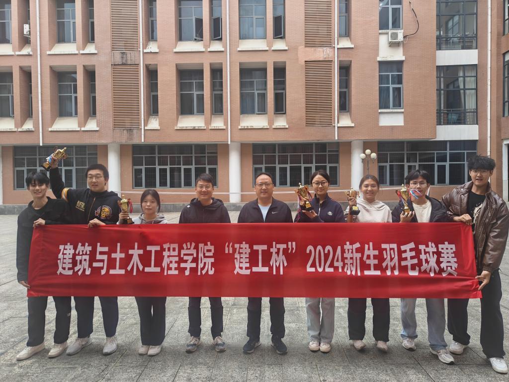 10月27日,建筑与土木工程学院“建工杯”2024级新生羽毛球赛颁奖仪式暨师生友谊赛在综合实验楼羽毛球场举行。学院党委书记王永贵、党委副书记王凯以及参赛师生参加活动。
