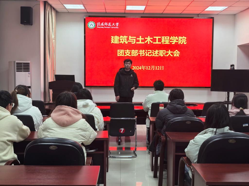 为加强团组织建设,提升团干部工作能力,12月12日晚,建筑与土木工程学院在综合实验楼206会议室召开团支部书记述职大会,学院团委书记冯舒心,团委副书记陈雨林以及全体团支部书记参会。