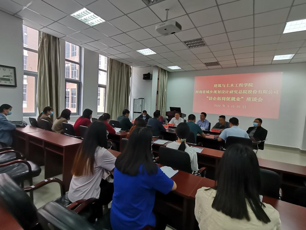 5月20日下午,建筑与土木工程学院与河南省城乡规划设计研究总院股份有限公司在土木楼206会议室召开“访企拓岗促就业”座谈会。河南省城乡规划设计研究总院股份有限公司信阳院院长张军、建筑所所长梁旺、建筑与土木工程学院党委书记方明科、党委副书记冀鹏、副院长肖琪聃、袁晓辉和毕业生代表等共30余人参加座谈会。
