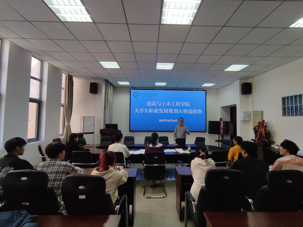 为引导大学生树立正确成才观、就业观和择业观,提升就业竞争力,实现高质量充分就业,建筑与土木工程学院10月16日中午在综合实验楼206会议室举行大学生职业生涯规划大赛选拔赛。学院党委副书记冀鹏、就业秘书邓林、专职辅导员张海燕、冯舒心、10名选手参加了本次比赛。