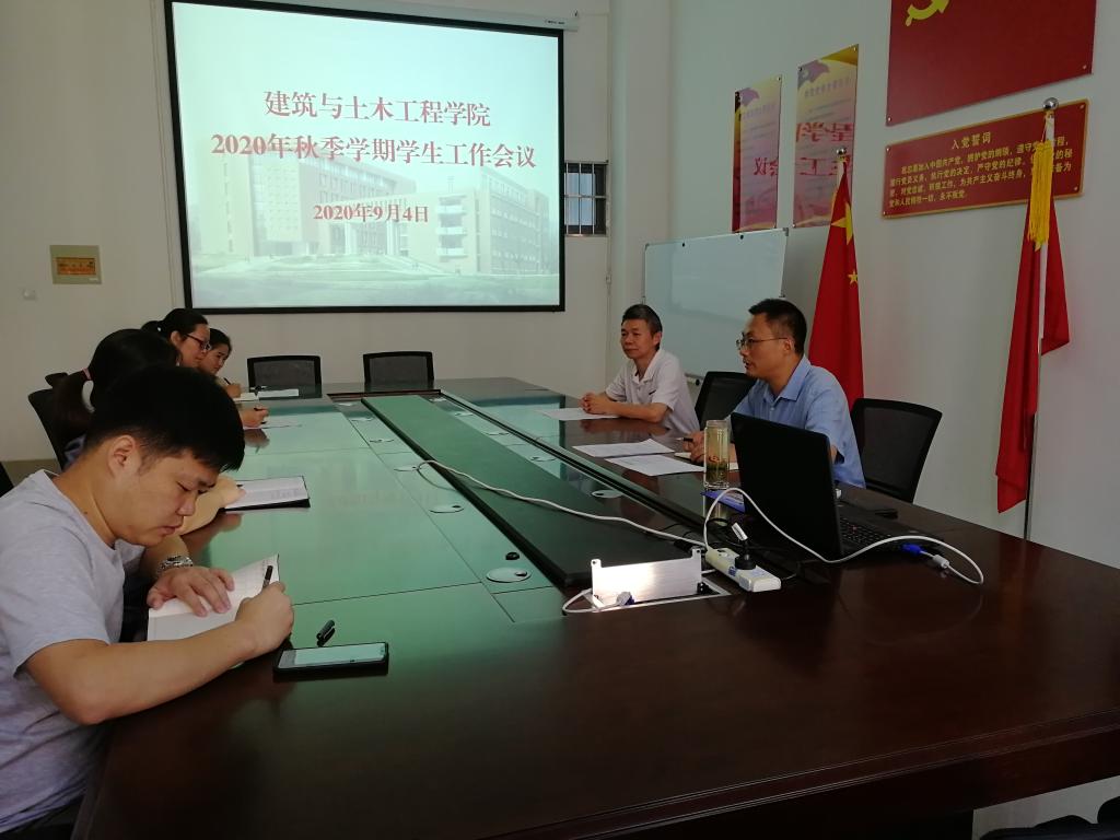 为贯彻落实好疫情防控常态化下学生返校复学相关工作要求,切实做好学院2020年秋季学期学生返校复学工作,9月4日上午,建筑与土木工程学院在综合实验楼203会议室召开新学期学生工作会议。学院党委书记黄学玉、党委副书记方明科及全体辅导员参加会议。会议由方明科主持。