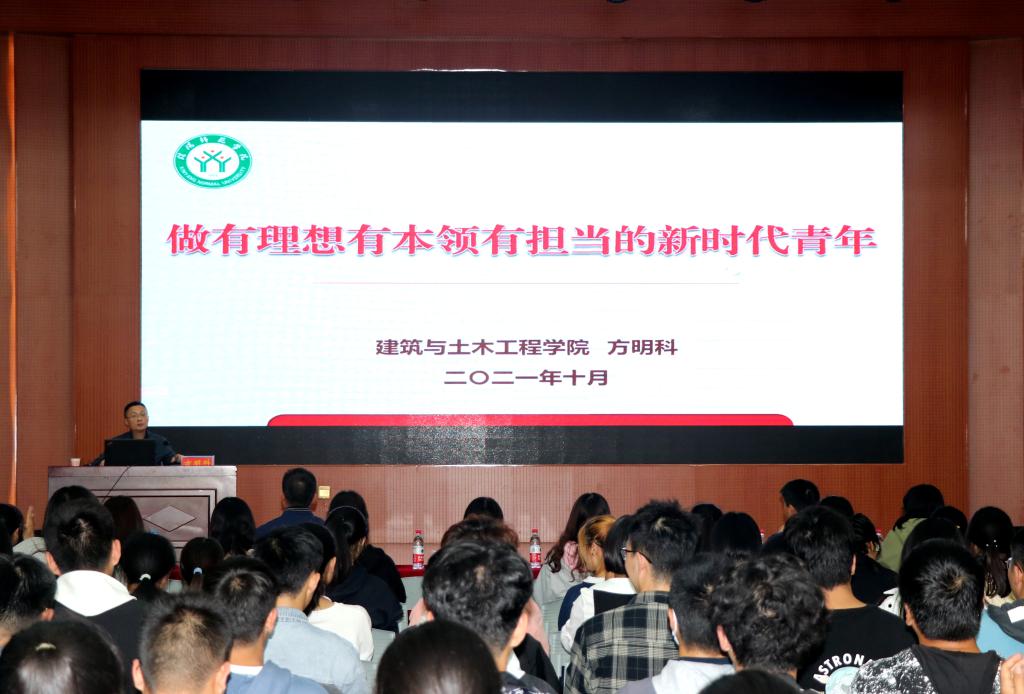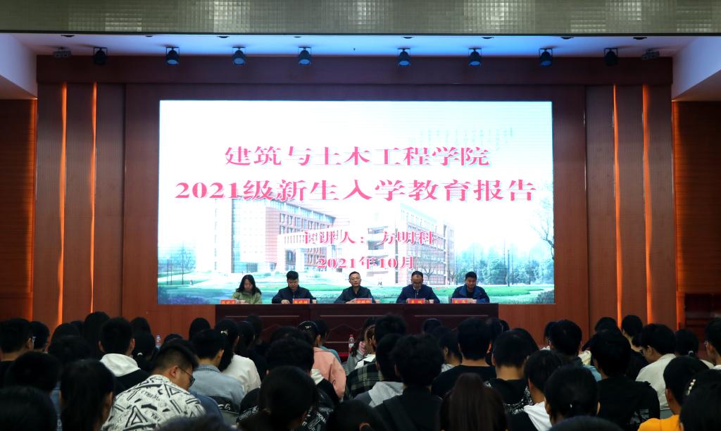为进一步贯彻落实全国高校思想政治工作会议、全国教育工作大会精神,帮助新生及早适应大学生活,按照学校统一安排部署和新生入学教育工作要求,建筑与土木工程学院于10月14日晚7点在逸夫楼报告厅举行建筑与土木工程学院2021级新生团校启动仪式暨新生入学教育首场主题教育报告。学院党委书记方明科、党委副书记冀鹏、全体辅导员班主任以及200余名新生参加了本次会议,报告会由冀鹏主持。
