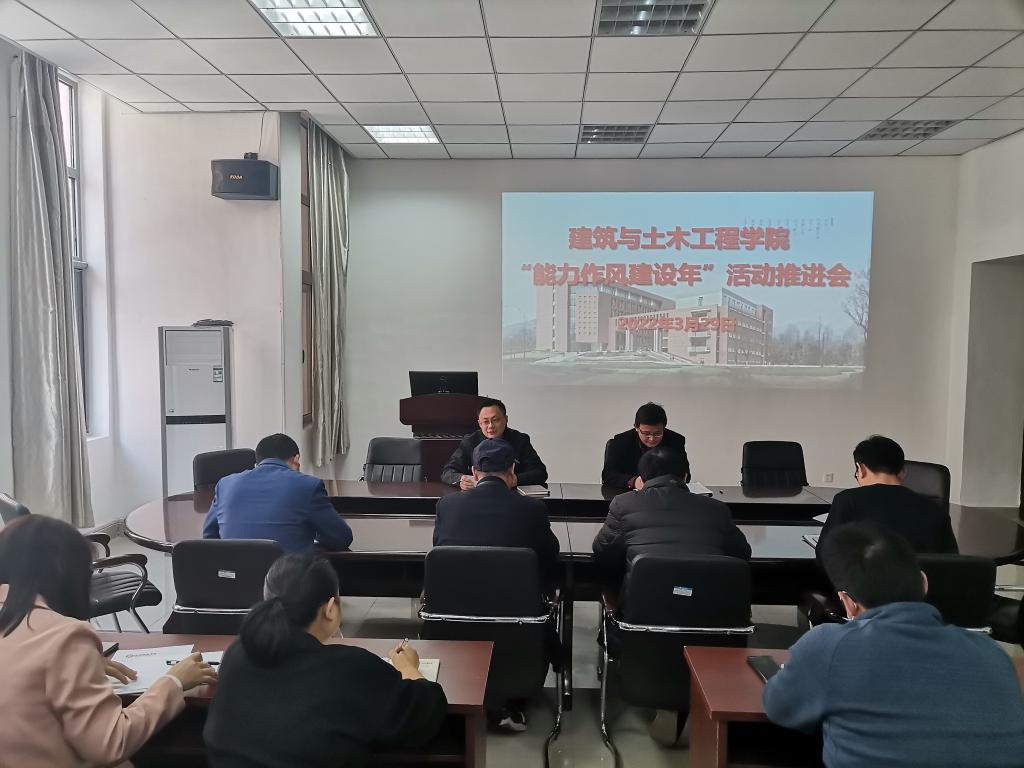 为进一步推进“能力作风建设年”活动走深走实,3月29日下午,建筑与土木工程学院在综合实验楼206会议室召开“能力作风建设年”活动推进会。学院全体领导班子成员、科级干部、党支部书记参加会议,会议由学院党委书记方明科主持。