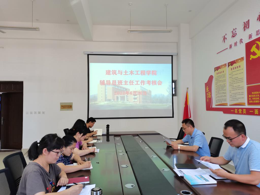 6月20日上午,建筑与土木工程学院在综合实验楼402会议室召开了辅导员班主任工作考核会。党委书记方明科、党委副书记冀鹏、全体辅导员班主任参加会议。