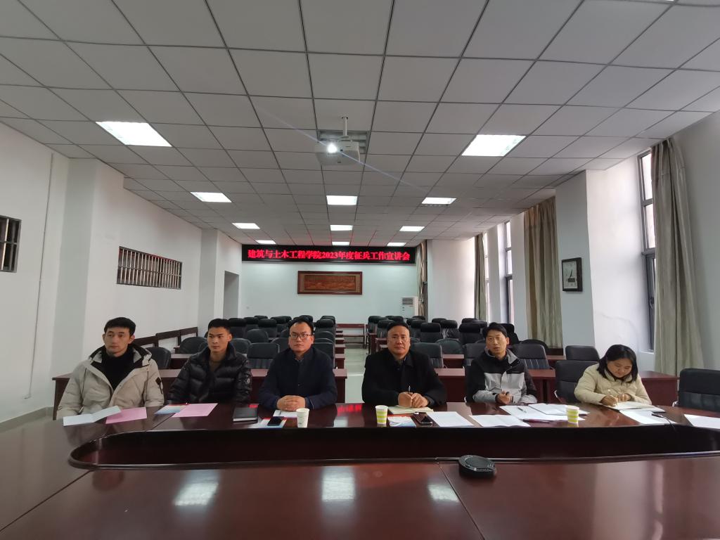 12月5日,建筑与土木工程学院2023年度大学生应征入伍宣讲会在综合实验楼206会议室召开,会议以线上线下相结合的方式进行。校党委学工部副部长兼人民武装部副部长苏和,校人民武装部国防科科长瞿巍到会指导,学院党委副书记冀鹏,专职辅导员张海燕、邓林,4名优秀退伍大学生及学院全体学生参加了会议。会议由冀鹏主持。