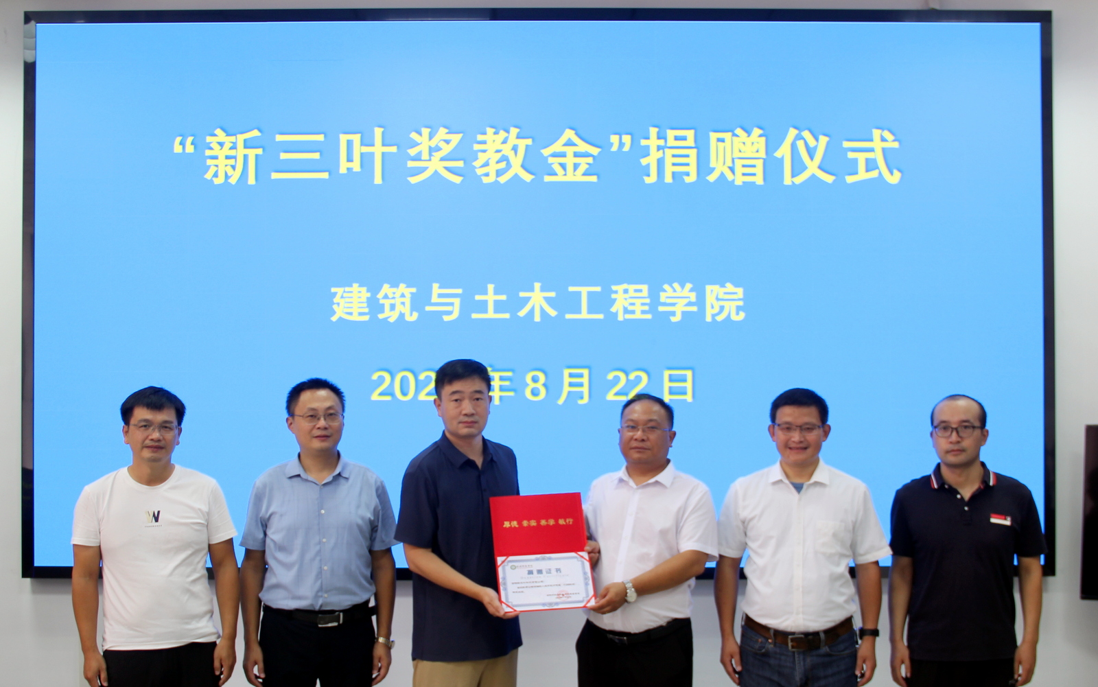 8月22日下午,信阳新三叶科技有限公司奖教金捐赠仪式在建筑与土木工程学院206会议室举行。信阳新三叶科技有限公司总经理王锡均、技术经理张云帆,永利集团官网党委书记方明科、院长周葆春、副院长肖琪聃、科研秘书马文强参加了捐赠仪式。
