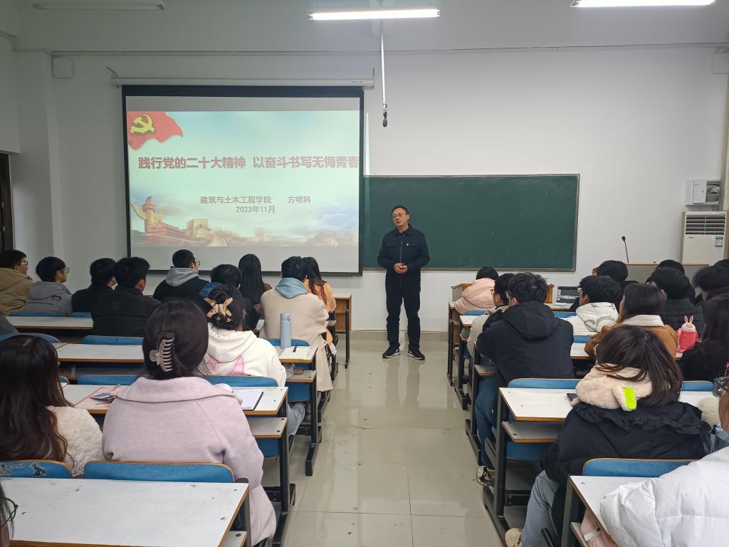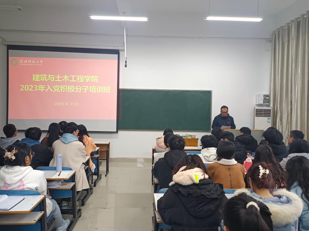 为深入学习贯彻习近平新时代中国特色社会主义思想和党的二十大精神,切实加强对入党积极分子的培养和教育,不断提高入党积极分子的政治素养与理论水平,严格把好发展党员的质量关,11月15日,建筑与土木工程学院2023年入党积极分子培训班在综合实验楼308教室开班。学院党委书记方明科,党委副书记冀鹏,学生党支部书记冯舒心及参加培训的60余名入党积极分子参加开班仪式。开班仪式由冯舒心主持。