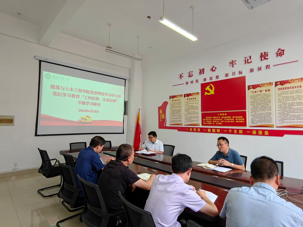 为扎实开展党纪学习教育,按照校党委党纪学习教育工作安排,建筑与土木工程学院党委理论学习中心组先后开展了3次党纪学习教育集中学习研讨。学院党委班子成员围绕《中国共产党纪律处分条例》(以下简称《条例》),紧扣党的“六项纪律”,结合自身的思想和工作实际作研讨发言,谈认识、找差距、明方向,自觉增强思想自觉、政治自觉和行动自觉,推动党纪学习教育学出实效,见成效。