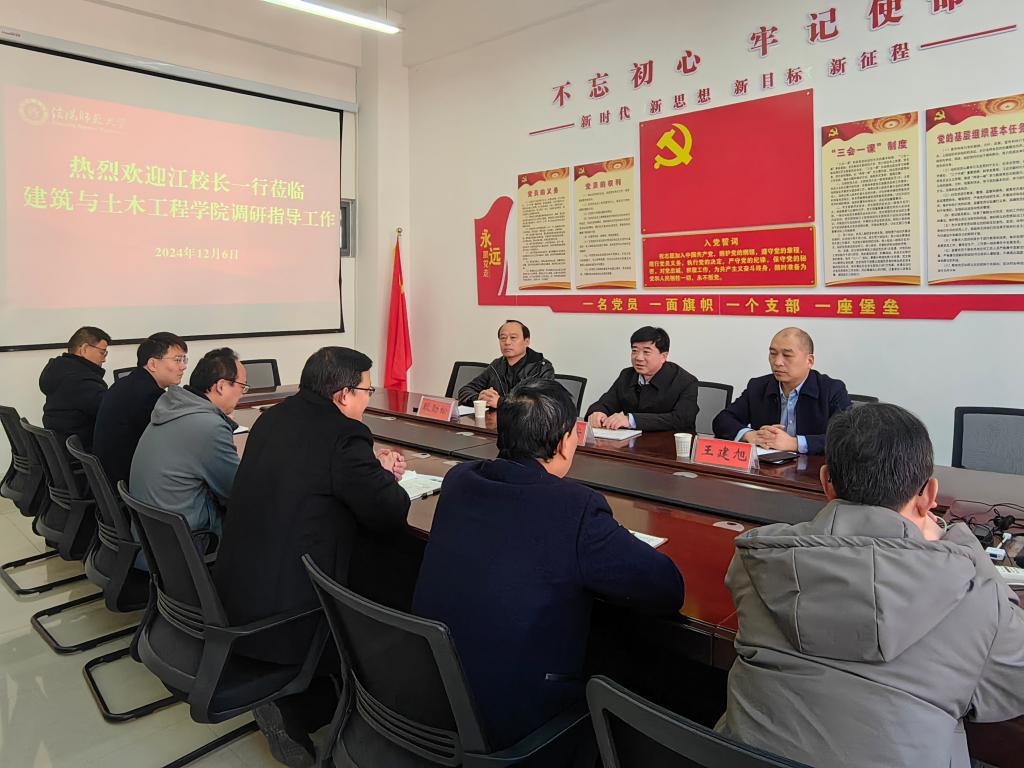12月6日,副校长江玉安到建筑与土木工程学院调研指导校友工作,校长办公室主任王建旭、对外联络办公室(校友联络办公室)主任耿劲松陪同调研。建筑与土木工程学院党政领导班子成员参加调研座谈。