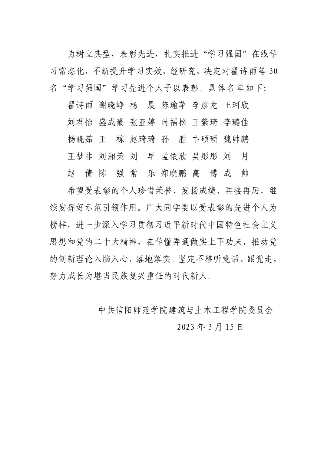 建筑与土木工程学院关于表彰“学习强国”学习先进个人的决定